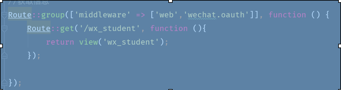 在laravel版的easywechat中自帶一個微信授權(quán)的中間件,使用非常簡單