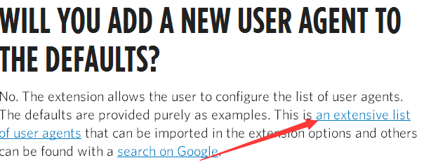 點擊右下角的“Downloadlists of user agents to import...”鏈接,在打開的網頁中找到下圖中標注的位置,我們可以找到最常用的UA列表了,這里直接給出列表的下載地址,方便大家下載。